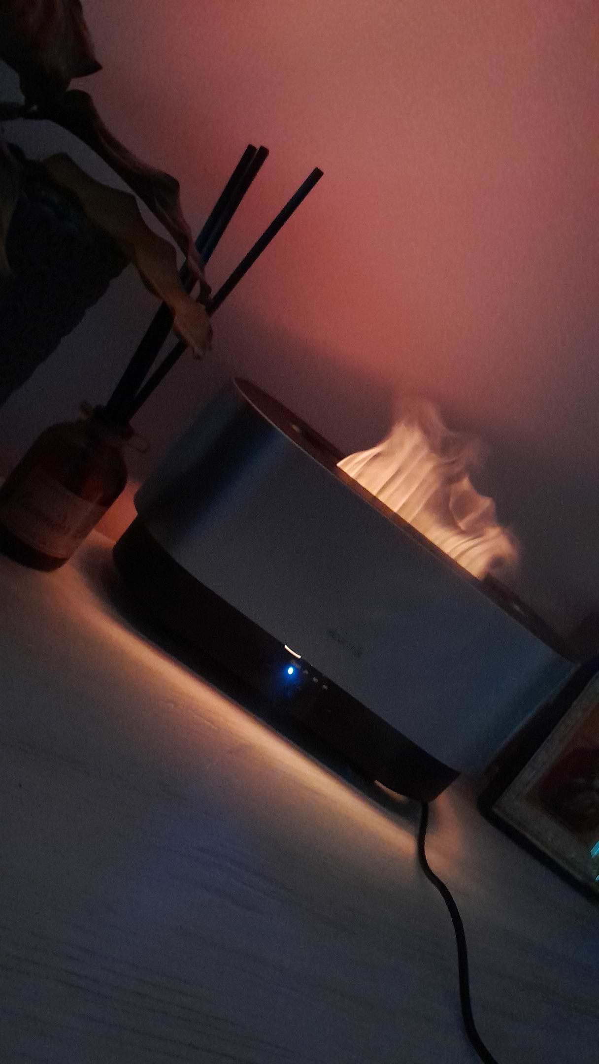 Купила і не пожалкувала. По-перше в квартирі стало краще спати, також цікавий факт це вплинуло на мого кота, він розслабляється і лягає спати разом зі мною. По-друге подобається як виглядає водяна пара, як полумя, схоже на камін. І ще подобається, що працює від павербанка та робить особливу атмосферу вдома, коли немає світла.
