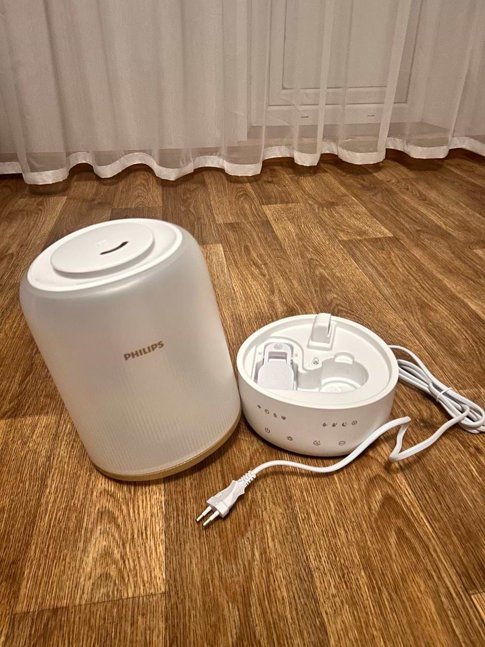 Товар отримав наступного дня. Всім задоволений.Шуму майже немає.тихий. зволожує чудово. Підключення без проблем.додаток Air + дає перевагу дистанційному керуванні!!