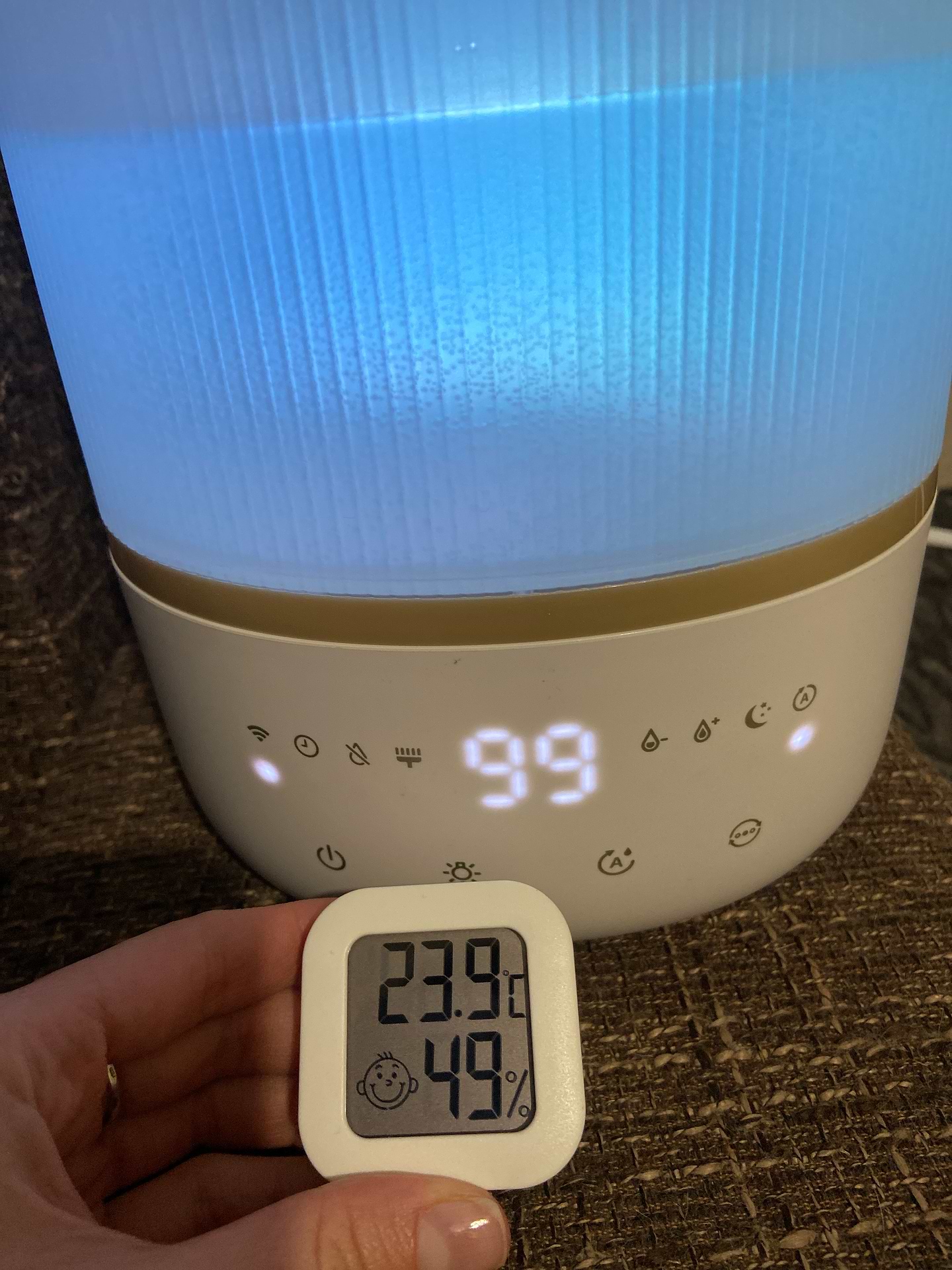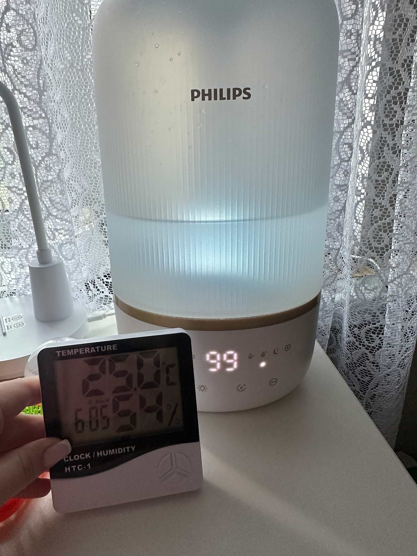Купила увлажнитель в июне,поначалу все было отлично,мне для растений нужна влажность 60, на высокой мощности все получалось,хотя разница в моем гигрометре и во встроенном в увлажнитель составляла 10-12(в увлажнителе конечно больше,но это и понятно),но сейчас стала разница до 25! И получается,что гигрометр на увлажнителе выдаёт 75, и естественно прекращает работу,а по факту влажность 50,но я купила