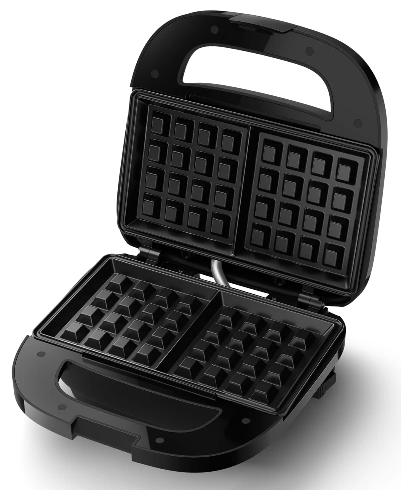 Маленька,компактна вафельниця,якісне покриття.Немає запахів пластику