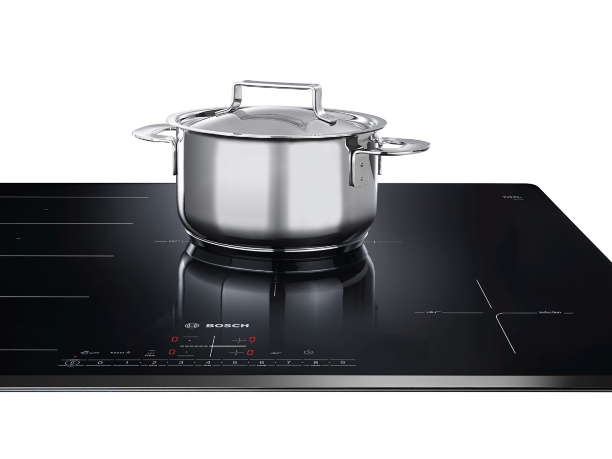 При использовании индукционных варочных поверхностей тепло концентрируется непосредственно на дне посуды, а не передается через стеклокерамическую поверхность. Эта технолония позволяет распознавать диаметр кастрюли или сковородки и направлять нагрев именно на такой размер посуды.