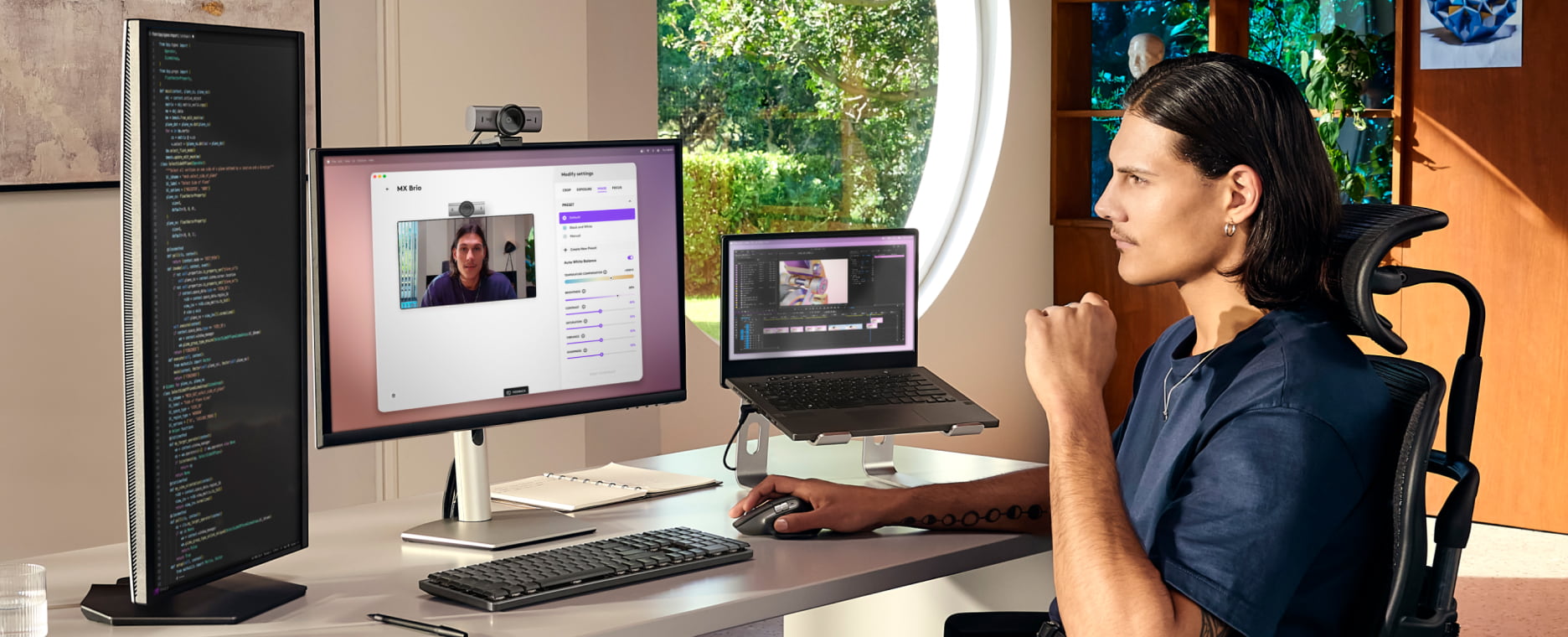 Точно налаштовуйте світло та баланс білого за допомогою ISO, швидкості затвора, температури, відтінку та яскравості за допомогою Logi Options+.