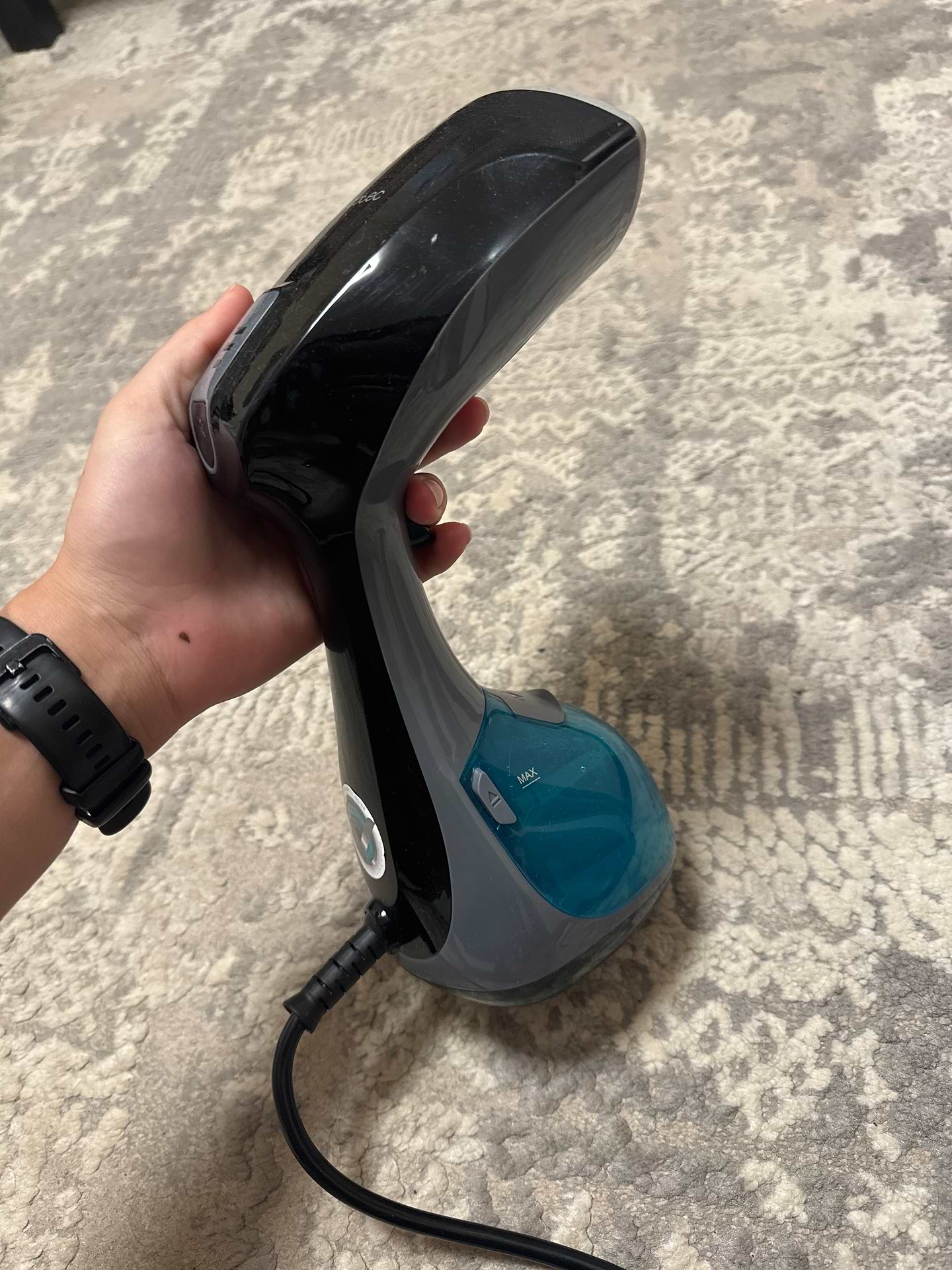 Це мій перший відпарювач,довго обирала і зупинилася на цьому)Відпарює речі за декілька хвилин)Має шнур 3 метри,це дуже зручно,резервуар для води з'ємний,що теж дуже зручно.Мені все подобається.Беріть не пошкодуєте.
