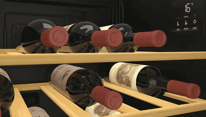 Полиці у винному холодильникові Candy DiVino виготовлені з натурального бамбука, який має сертифікат FSC, тому винні пляшки