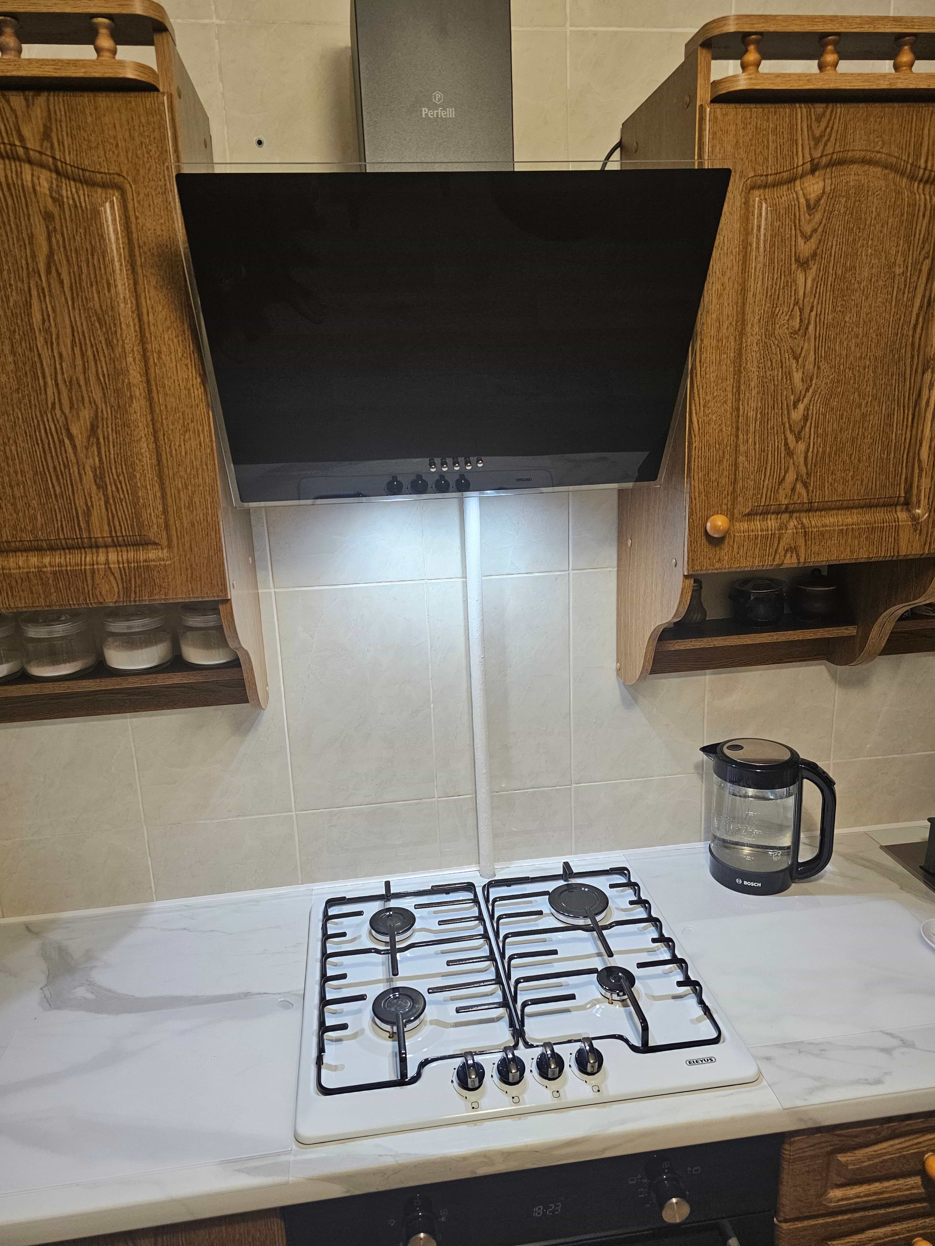Брали с мужем такую декоративную красавицу от бренда Perfelli для своей кухни. Вытяжка очень понравилась и покорила именно своим дизайном удачно подчеркнув стиль нашего ремонта. Эта вытяжка имеет 3 скорости, все они классно функционируют, мотор в данной модели очень мощный с легкостью справляется с циркуляцией. Вытяжку устанавливал муж, проблем у него с установкой не возникло. В уходе непривередливая, не оставляет на своей поверхности пятен и следов от рук.