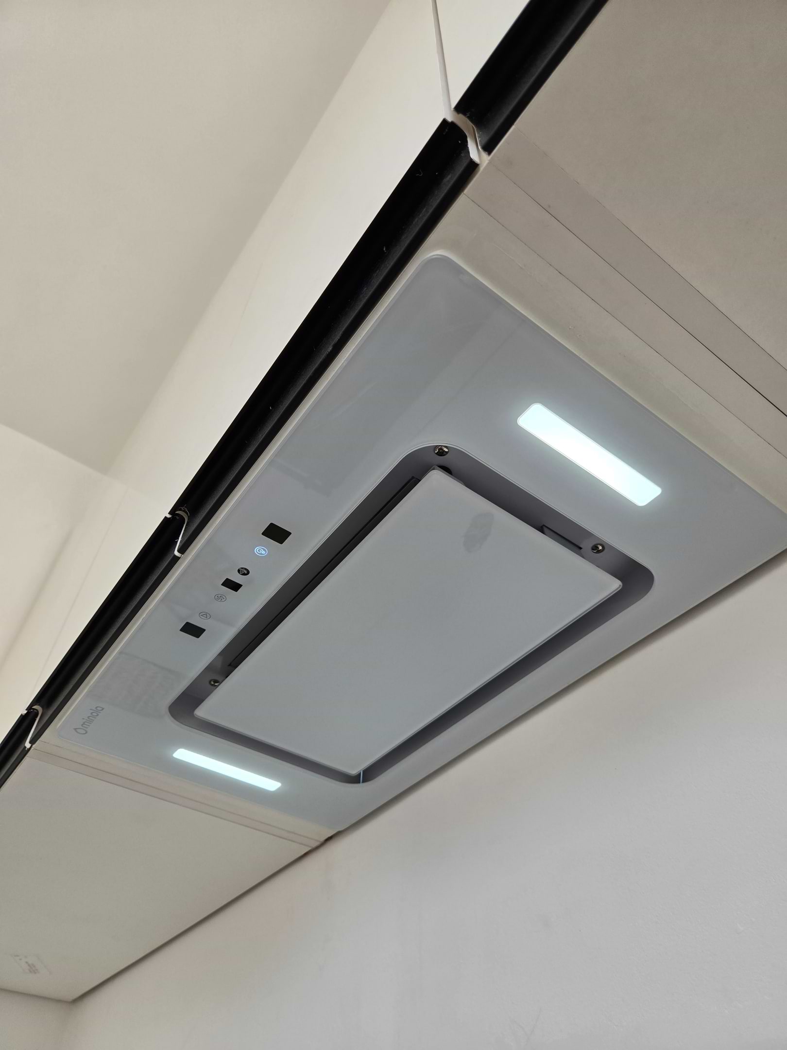 Стильна та функціональна вбудована витяжка витяжка, чудо вписалась в кухню. Візуально непомітна, відносно тиха (залежить від швидкості яку включили). В комплекті є пульт, але топ фішок - управління жестами!