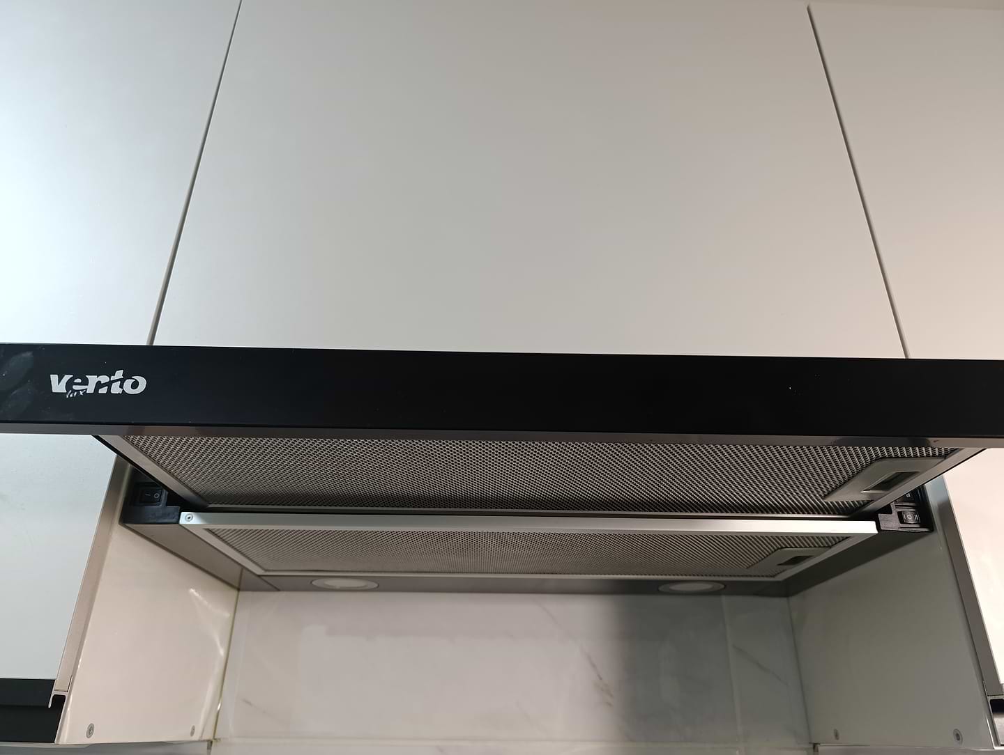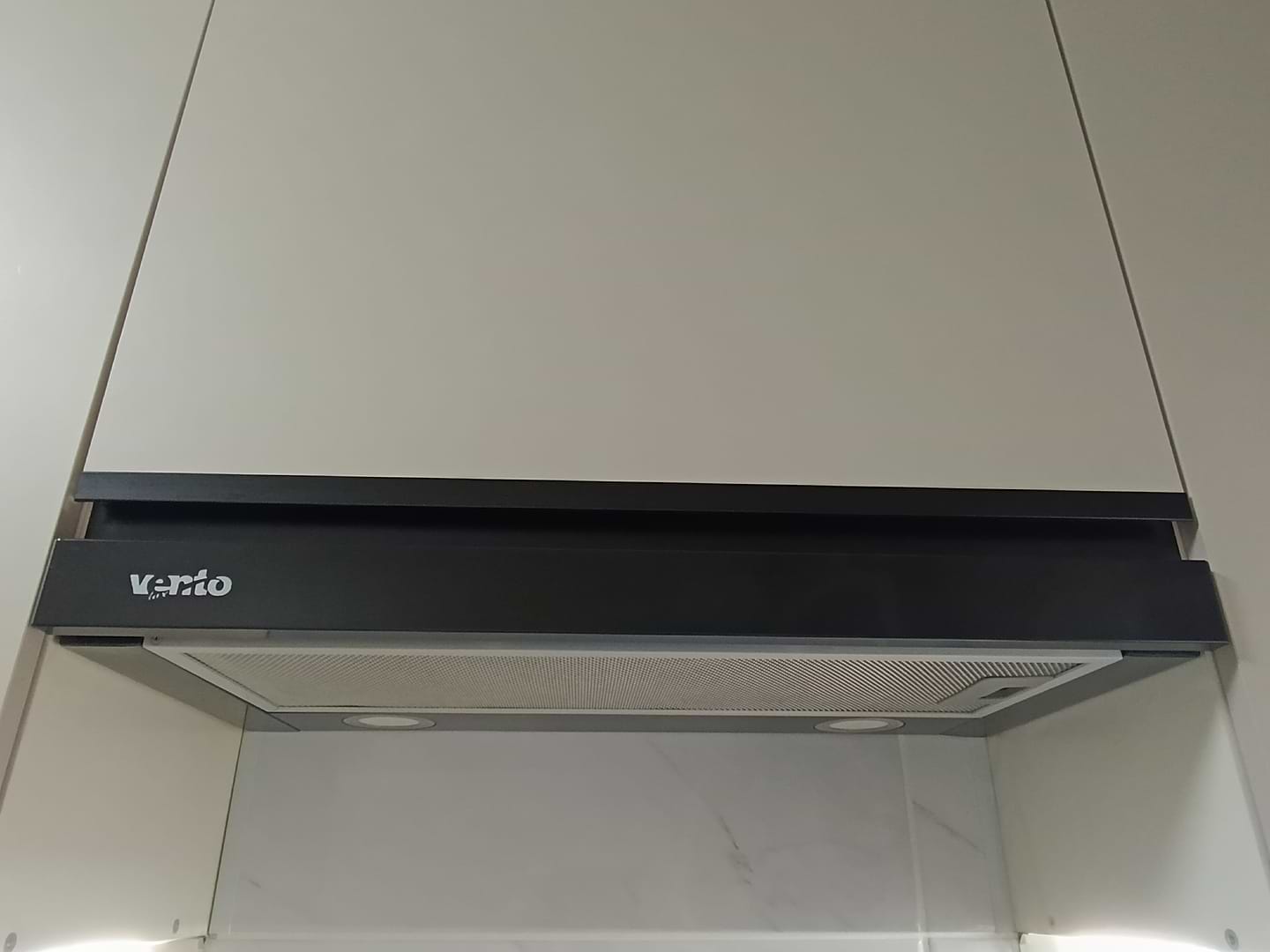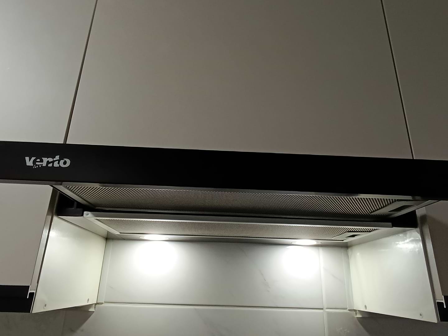 потужна витяжка, гарна. Гарний білий колір - світло .