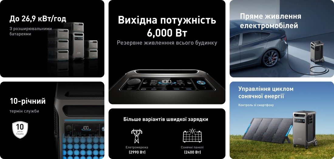 За допомогою Anker SOLIX F3800 ви можете легко заряджати електромобілі, адже він має EV порт (2990 Вт).