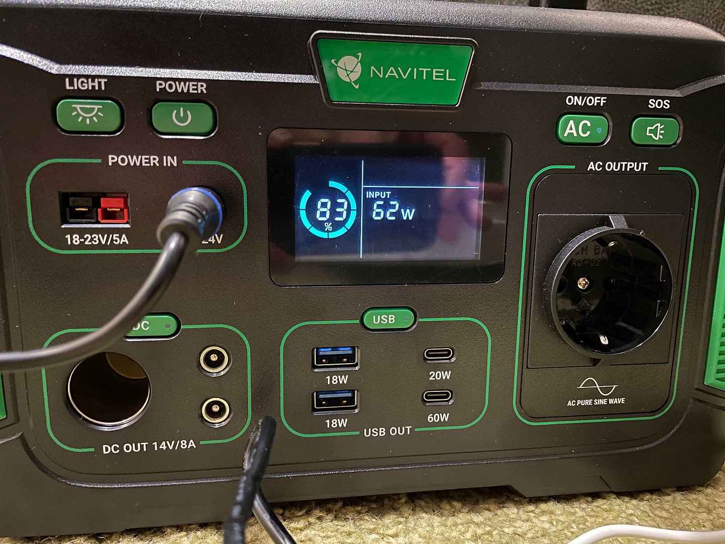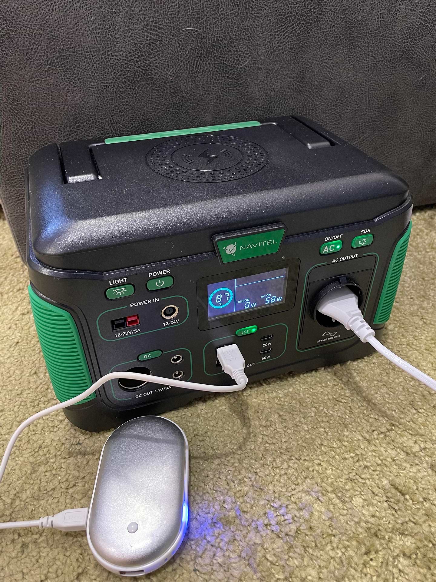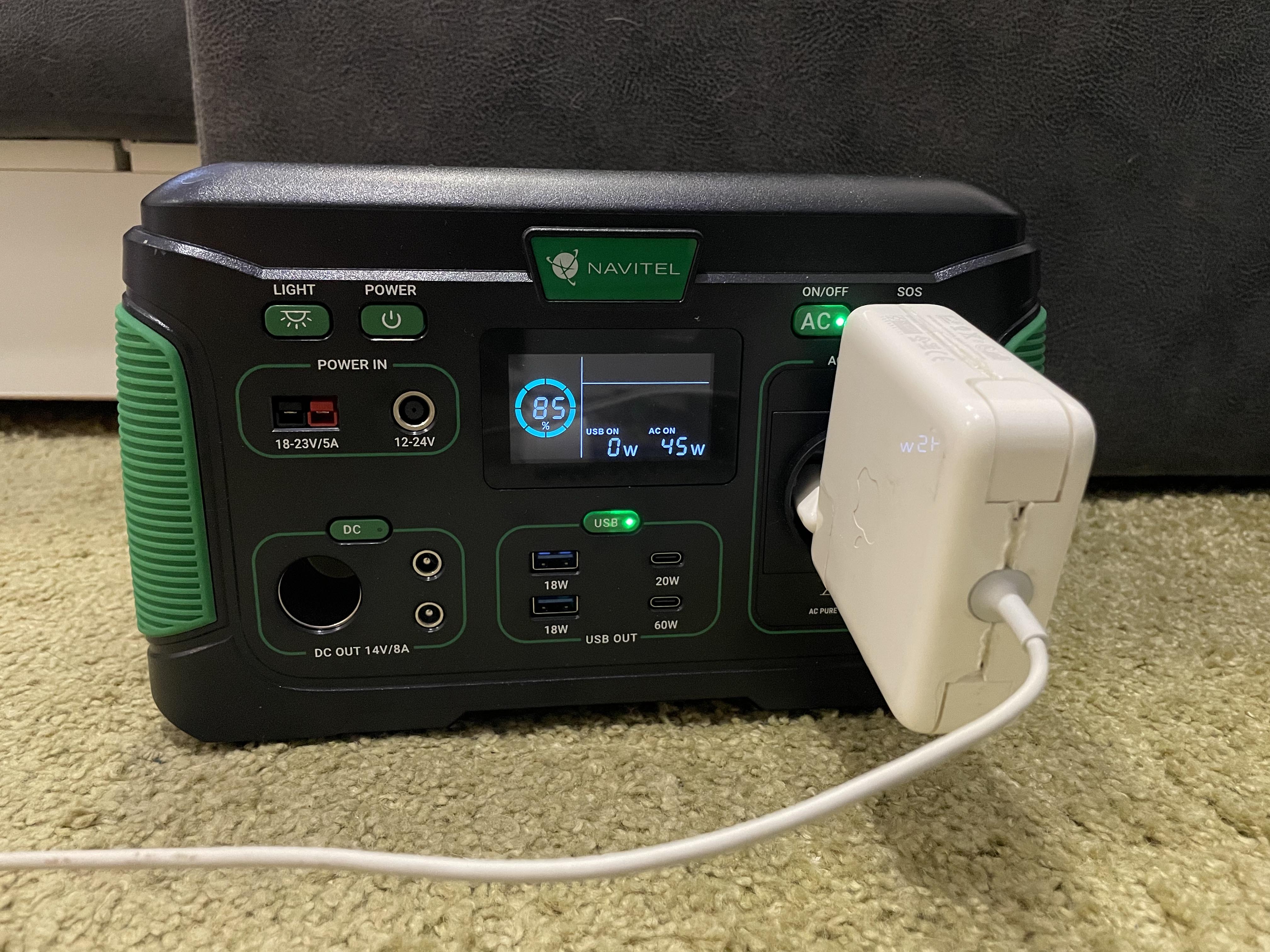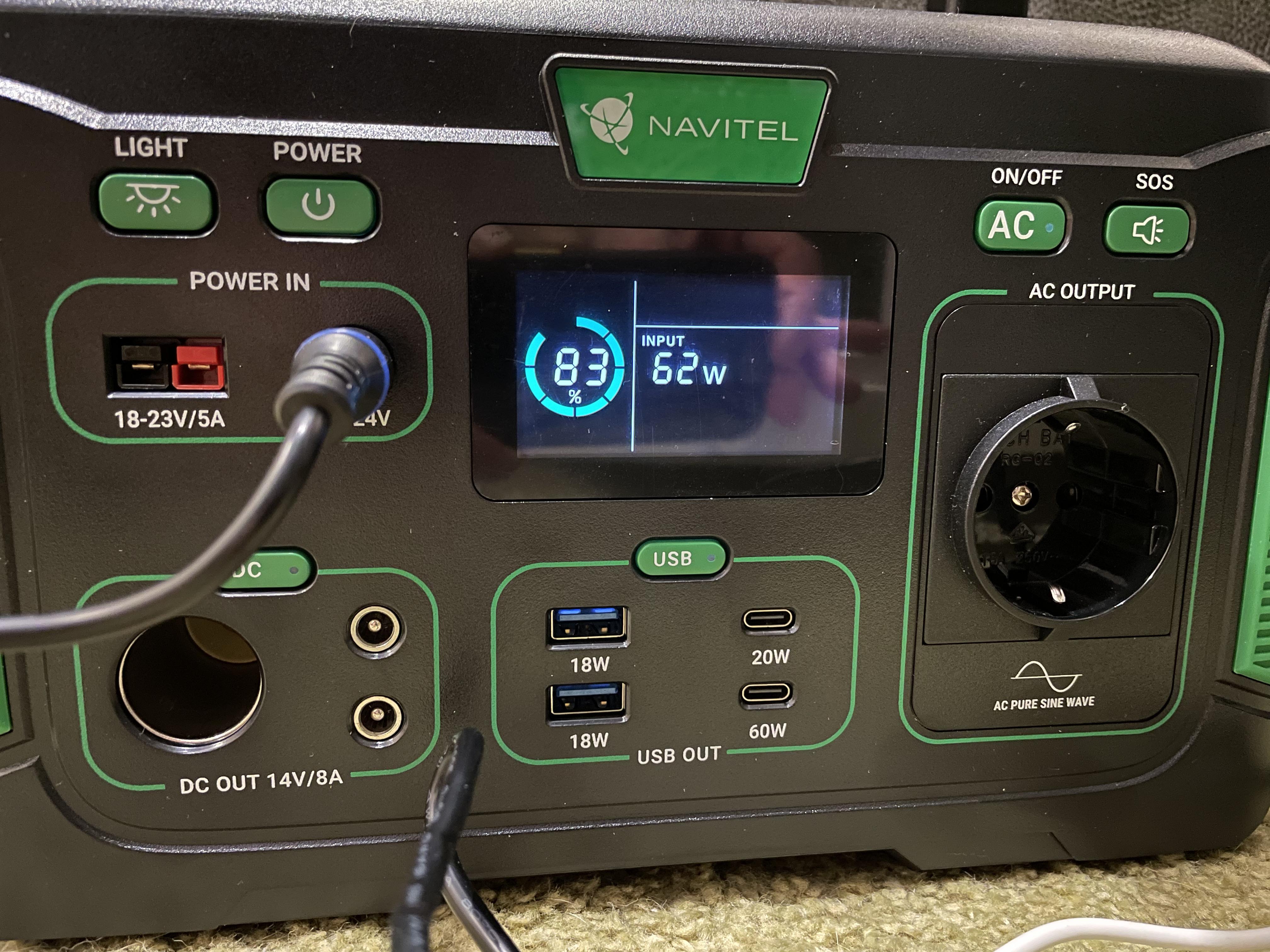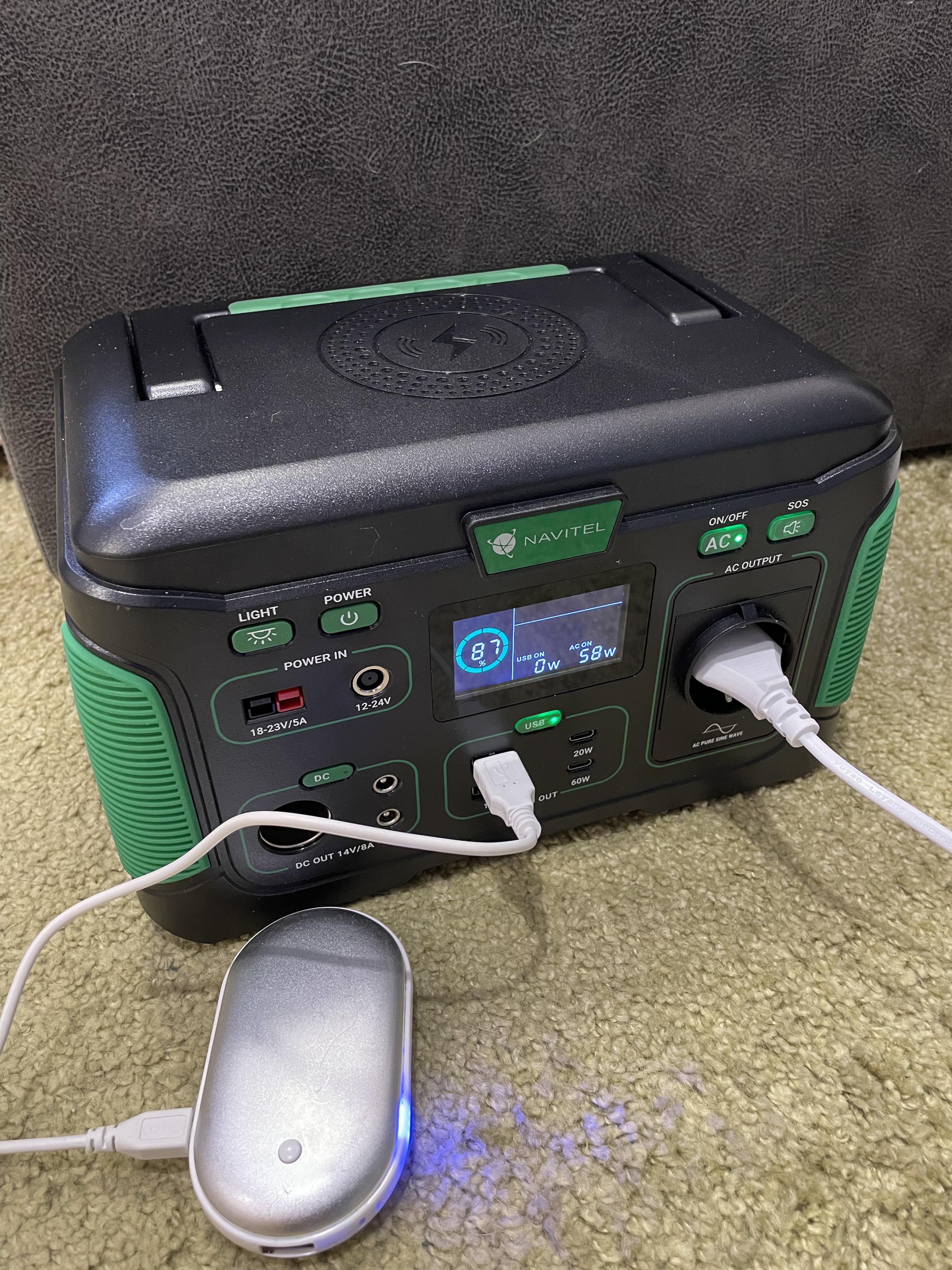 Отже. Перебравши купу варіантів, зупинилась на цій. Зовнішньо станція ергономічна та естетична. Проста в користуванні. Світлова панель гарно освітлює кімнату 18 м2. З нуля до 100% станція заряджалась 6 годин. Побутову техніку (холодильник, чайник, праску, блендер) не тягне (але то мені і не треба). Підключила грілку для рук через usb, простирадло через AC, смартфон через бездротову панель - за 40 хв. такого навантаження заряд зменшився на 13%. Охолоджувач доволі гучний, вмикається приблизно кожні 15 хв., але звикаєш швидко до того звуку. Макбук-про підключений до АС за 10хв з'їв 5% заряду. Виходячи зі всього описаного вище, думаю, вистачить цієї станціі в режимі ноут-телефон-ковдра на добу+-. Малувато як для блекауту. Як варіант - зарядити через добу від автомобільного прикурювача... Буду ще тестувати два тижні.