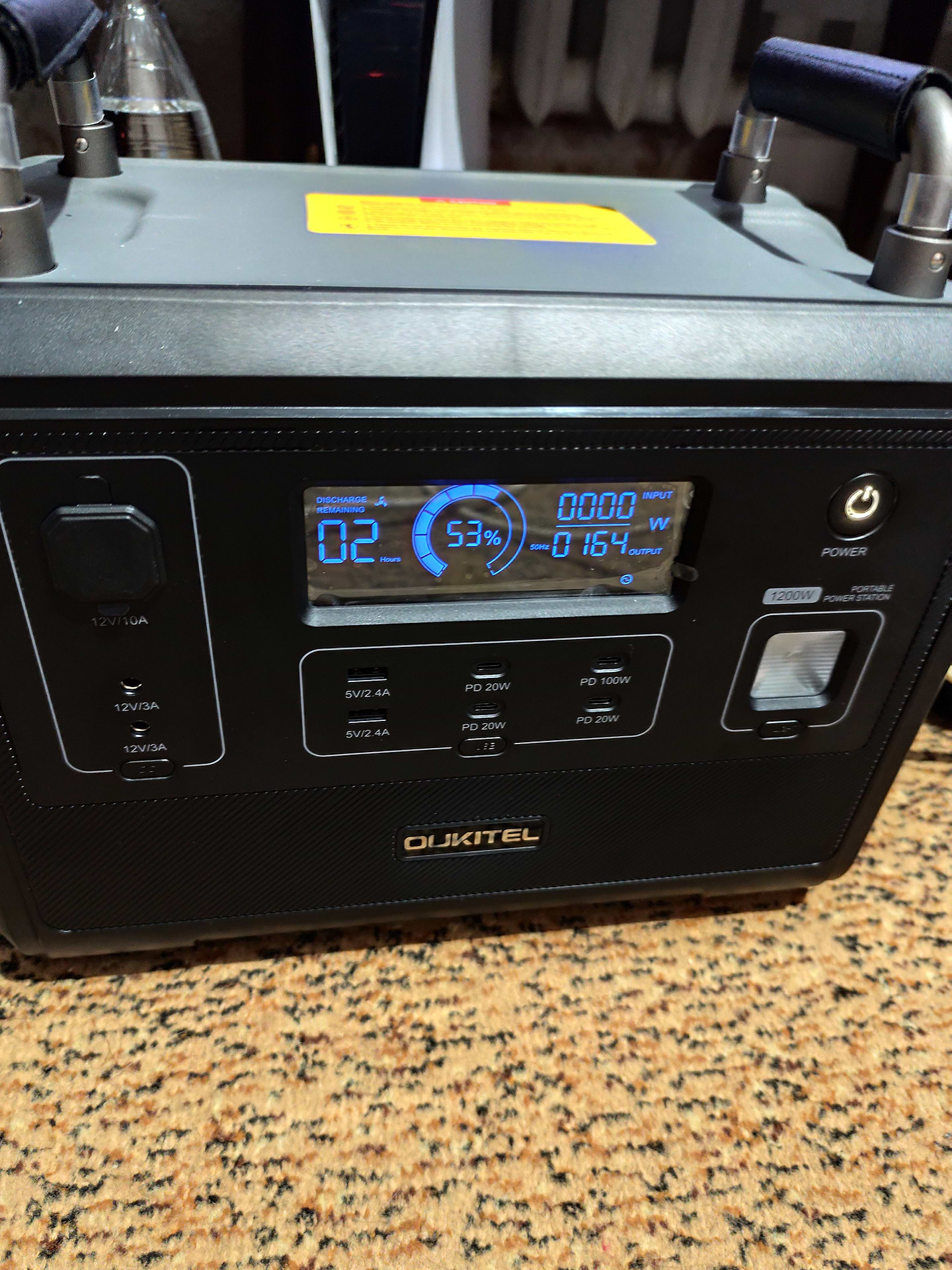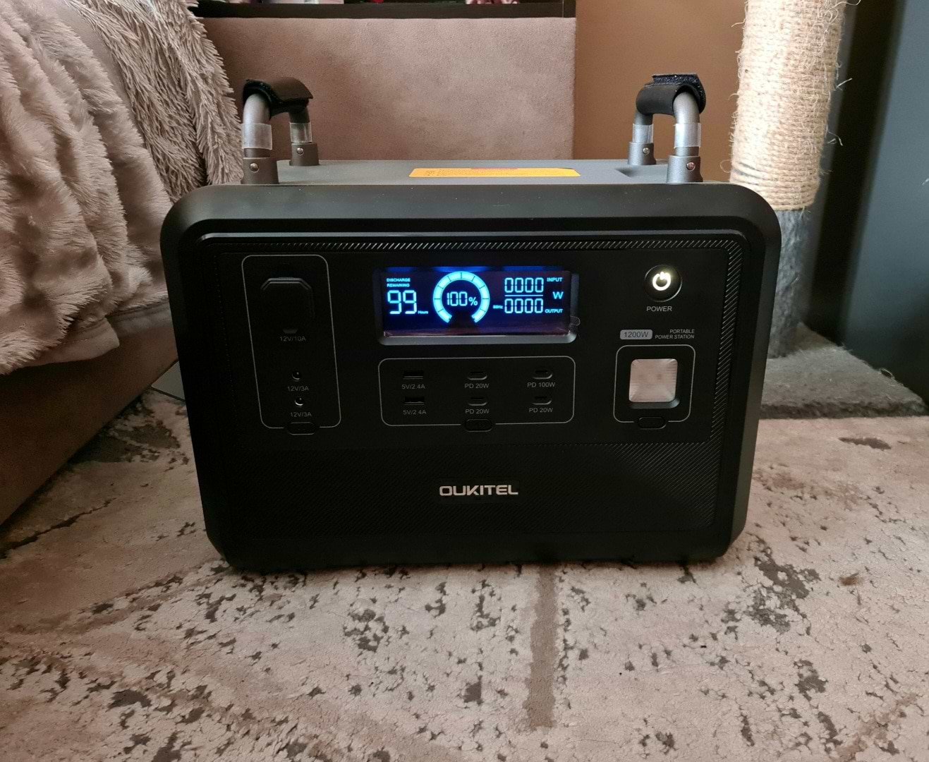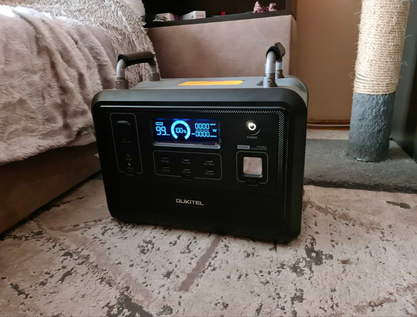 отримали швидко, кур'єр ввічливий. потужність достатньо висока. на ігровому комп'ютері вистачає на 3-4 години. мікрохвильовка працює добре. підключили лед стрічку, освічує супер, заряду вистачить мабуть на місяць)))