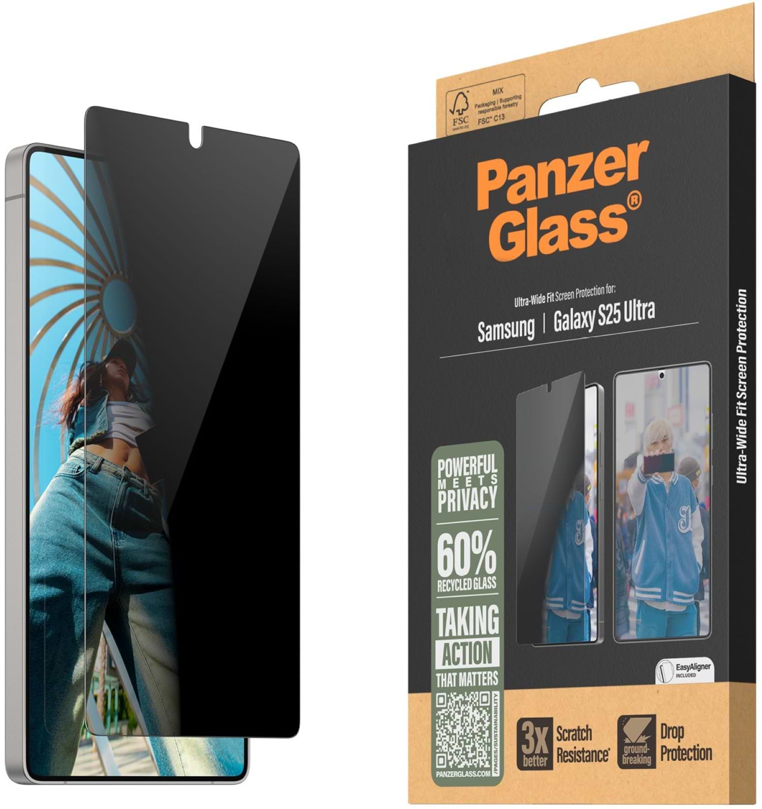 Захисне скло для смартфону PanzerGlass Privacy Samsung Galaxy S25 Ultra | Ultra-Wide Fit (PG_PGRPUWFG38488)
