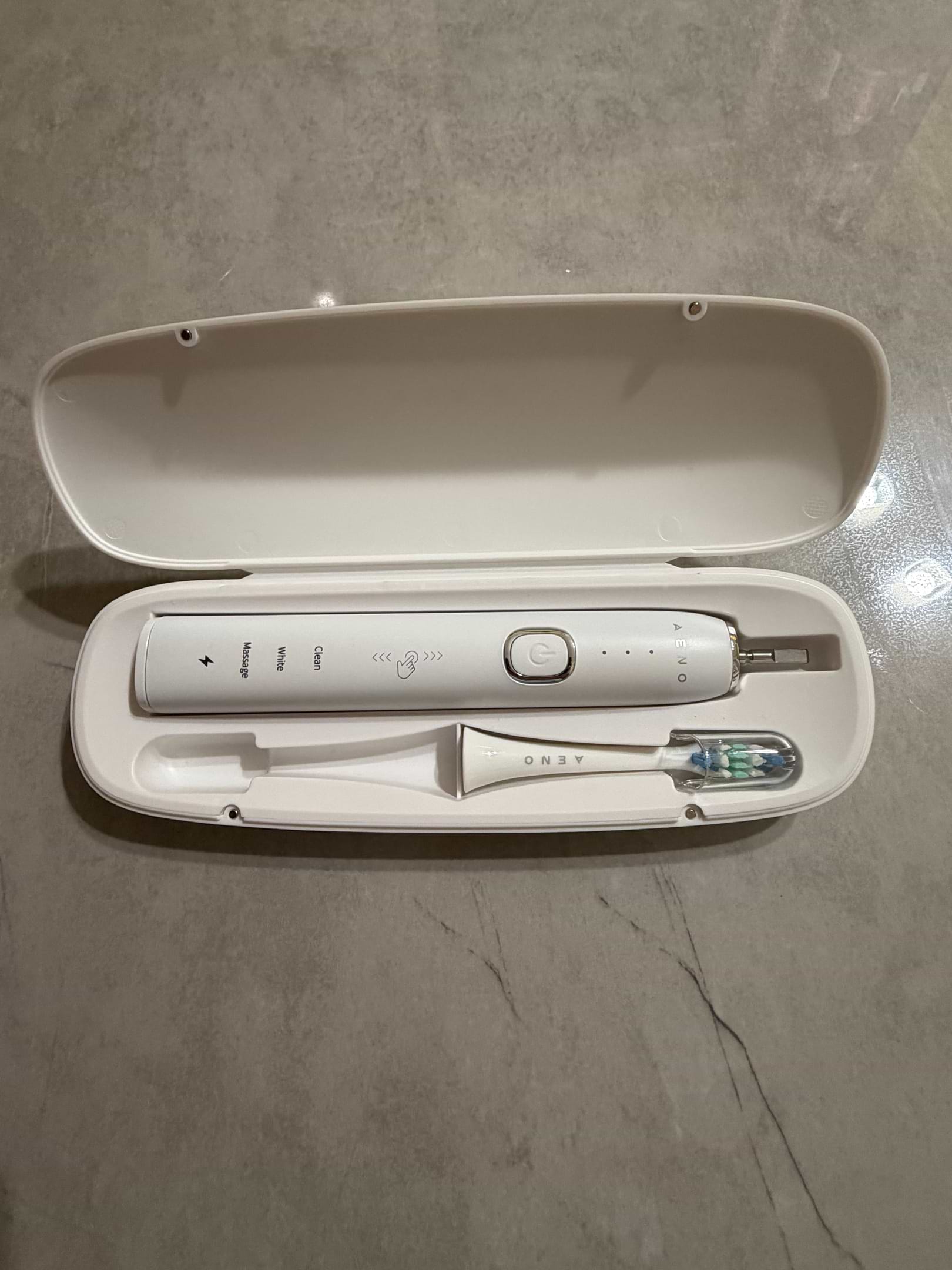Стильна зубна щітка, виглядає дуже гарно в білому кольорі. Комплектація дуже чудова, 4 насадки та футляр для подорожей. Довго тримає заряд. Чистить чудово.