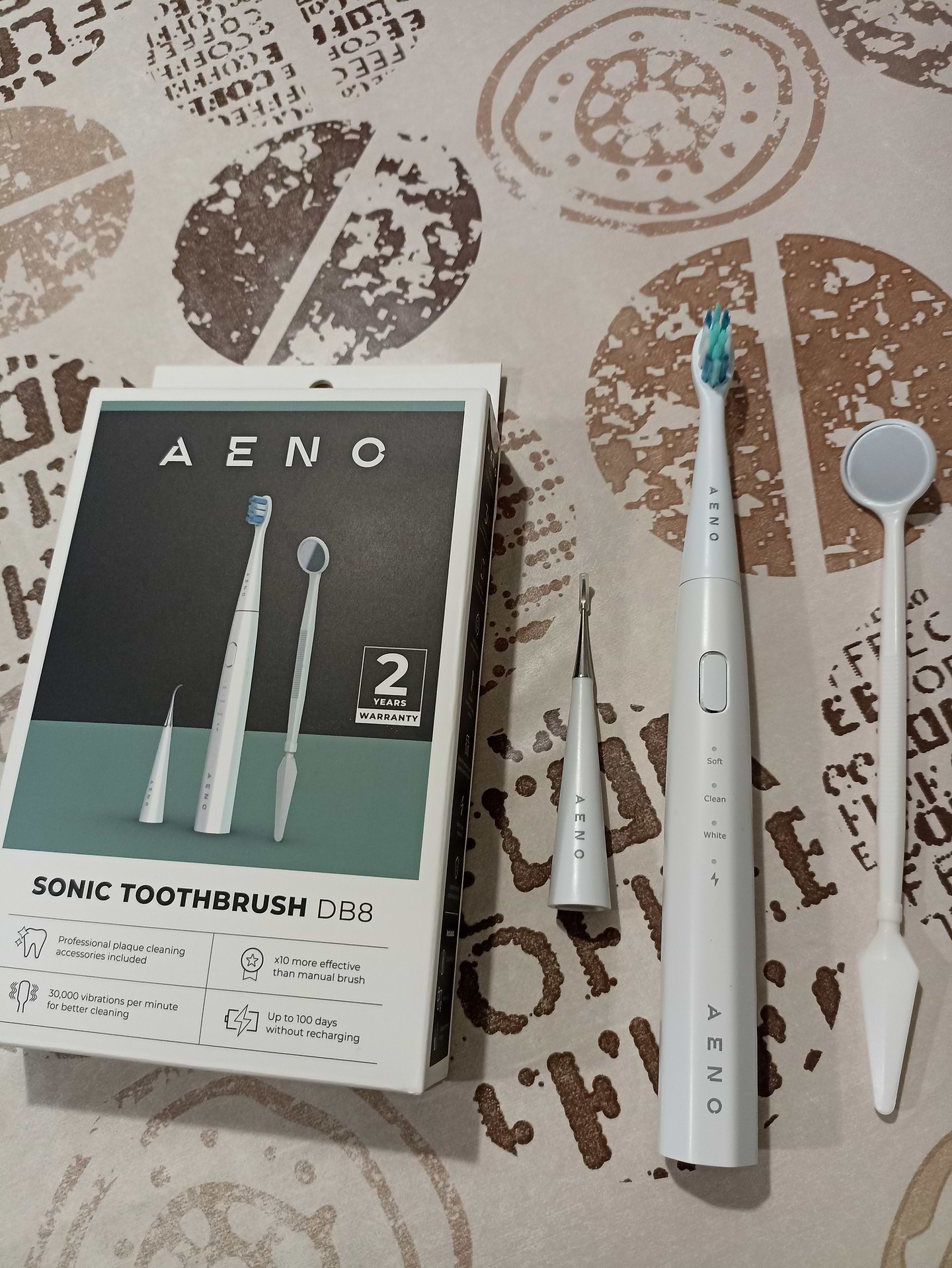Це вже мій третій товар цього бренду. Пакування як завжди на висоті. Сама щітка теж виглядає якісно і на дотик приємна, має 3 режими. Насадки трохи незвичні, відрізняються від бюджетних щіток типу pecham, scandix та ін. Спочатку здались занадто жорсткими але дискомфорту при чищенні не завдають, зуби після чистки гладкі. В комплекті є дзеркальце і найцікавіше назадка для видалення зубного каменя. Стрьомна штука, але якщо потренуватися можна буде підчищати твердий наліт у легкодоступних місцях. В цілому за таку ціну отримуємо щітку, 4 насадки (3+1 металева) і дзеркальце. Побачимо як далі прослужить.
