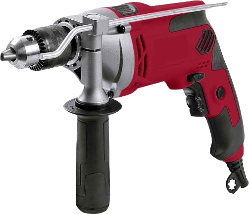 Дрель, дополнительная рукоять, глубиномер, патронный ключ, угольные щетки, документация