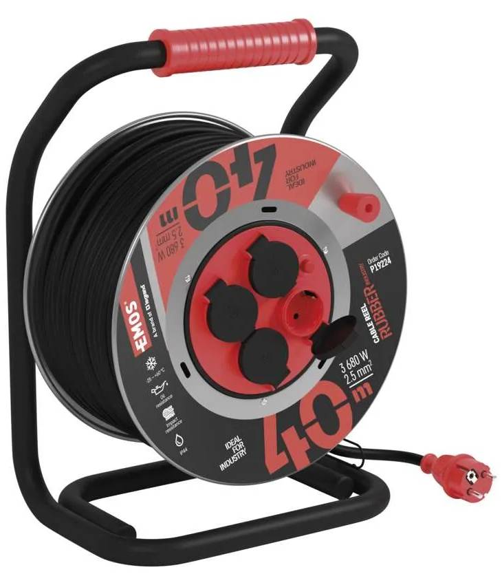 Удлинитель 220В EMOS на катушке EMOS P19224, 4 розетки, 40, резина/неопрен