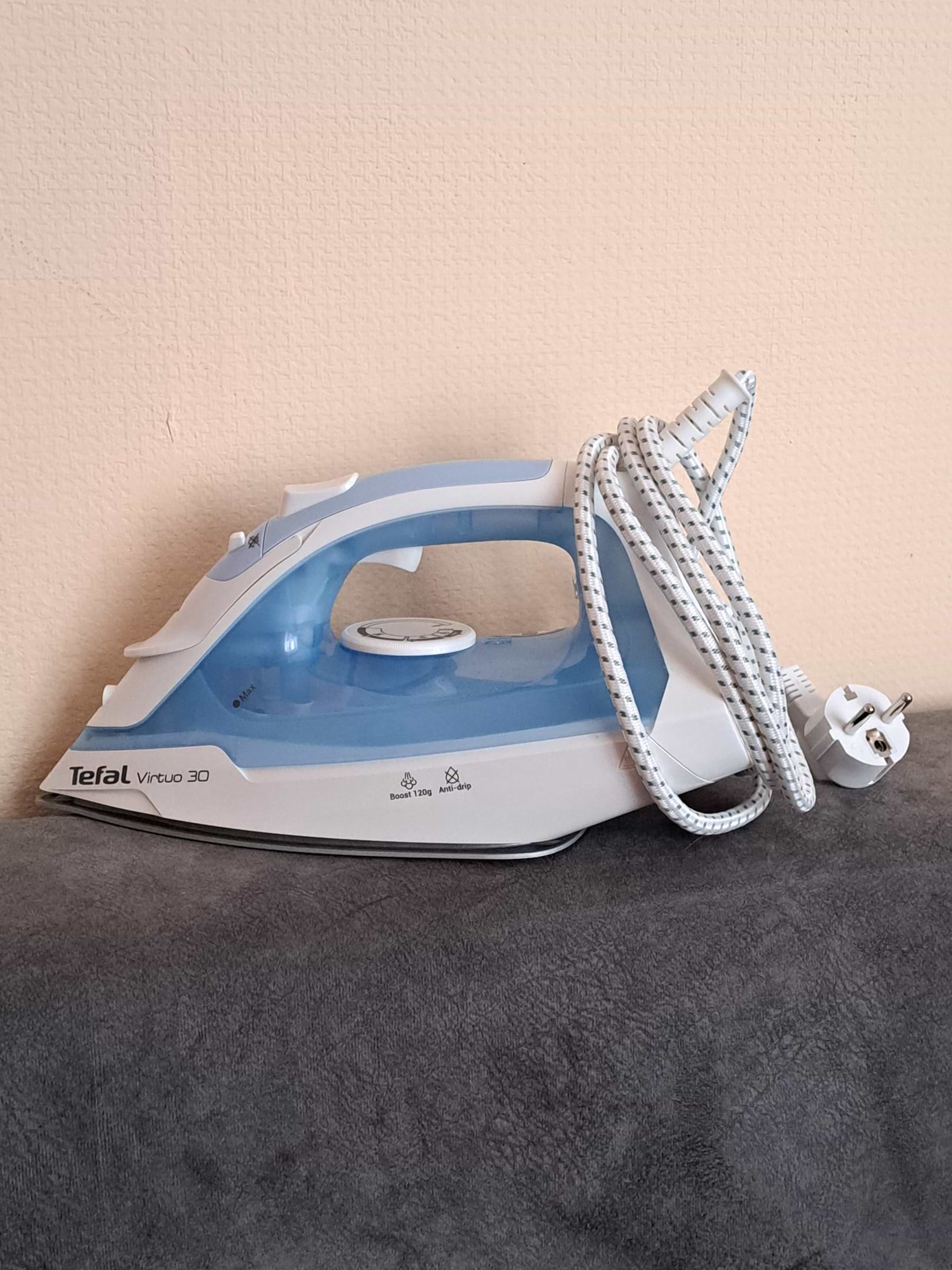 Легко гладьте толстые ткани, быстро разглаживайте даже самые стойкие складки благодаря мощному паровому удару 120 г/мин.