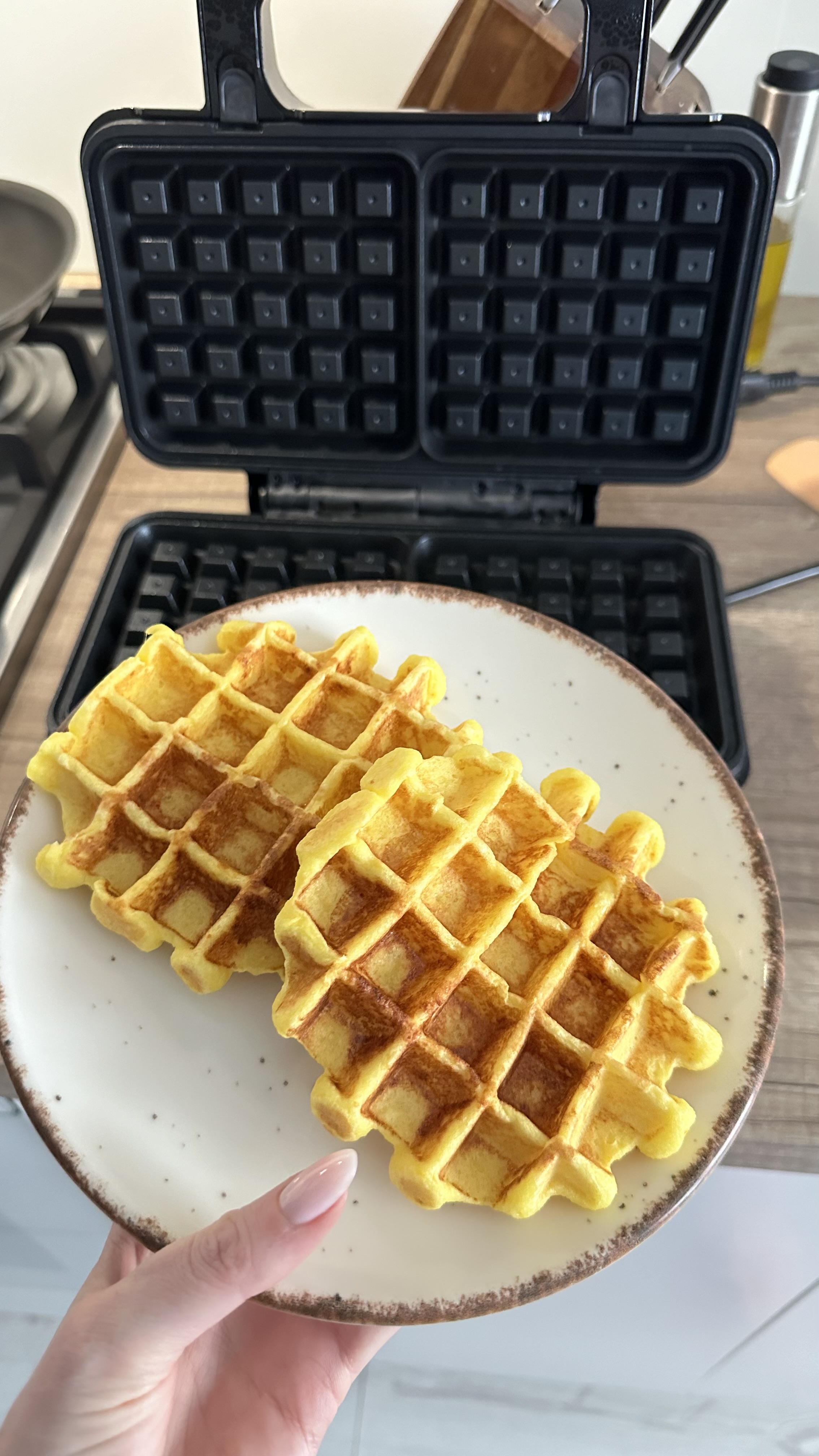 Сьогодні смажила вафлі. Вийшли супер, 4 хв і готово. Поки що нарікань ніяких. Компактна гарна вафельниця.