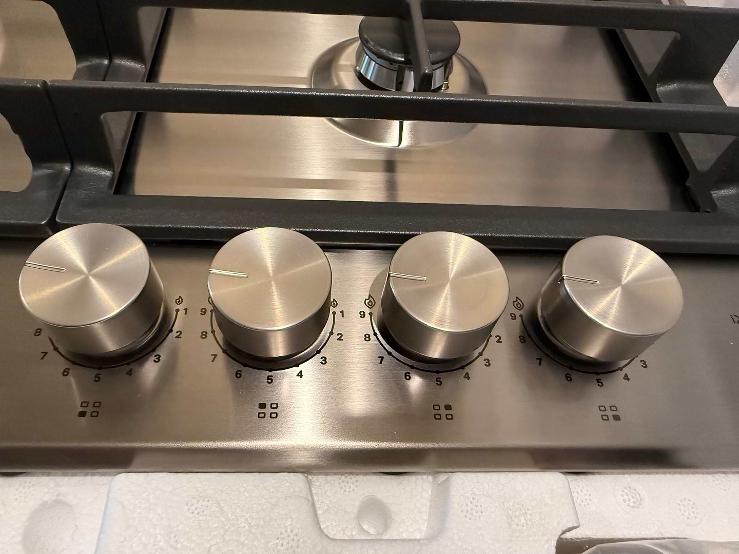 Відгук пишу на основі тільки візуальних вражень,бо поверхня ще не вмонтовання,змоги спробувати її в роботі ще немає.Вибирала варильну поверхню таку,яка б обовʼязково мала турбокомфорку,оскільки моя попередня варильна поверхня її мала,з особистого досвіду знаю як це зручно.Дуже хотілось після скляної поверхні спробувати нержавійку,але мала страх ,що або подряпається швидко ,або буду постійно витирати відбитки пальців.На останньому фото намагалась зловити ті самі відбитки,але як і обіцяє виробник їх практично невидно.Чугунні накладки такі як і мають бути-важкі,міцні і дуже зручного розміру,легко буде мити в мийці.