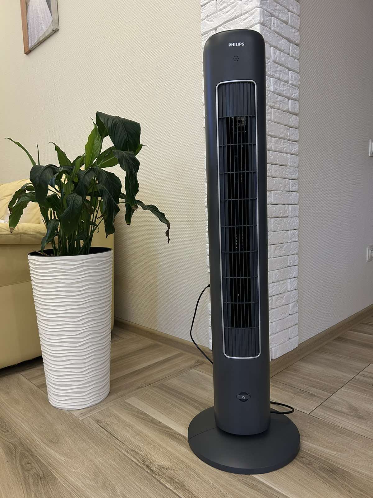 Класно вписався в інтер'єр кімнати. Дуже стильна річ. Той випадок, коли якість та стиль коштують своїх грошей. Тихий, енергоефективний, спекою перевірений, особливо Природний вітер режим сподобався. І дифузор для ароматизації сподобався, ми використовуємо м'яту, така свіжість. Дуже рекомендую!