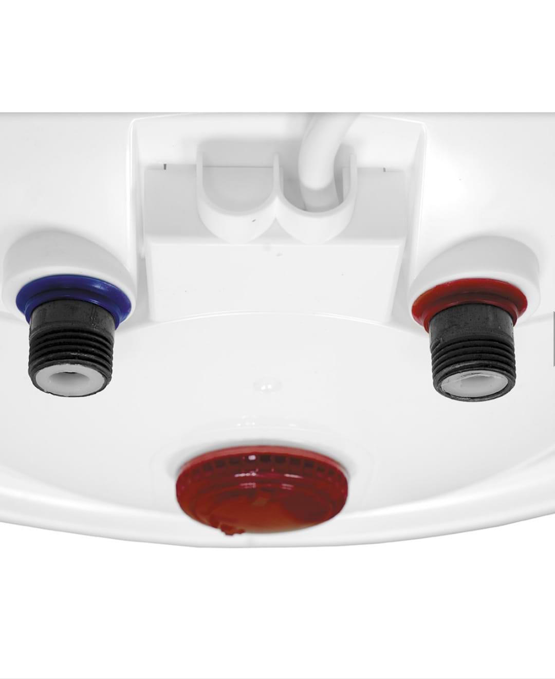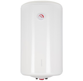 Модель выполнена в белом цвете, благодаря чему она впишется в любой интерьер. Форма корпуса классическая цилиндрическая. За небольшой по размерам крышкой, в нижней части устройства расположен механический регулятор нагрева воды. Также бак оснащен индикатором, который показывает текущую температуру воды. Деталь имеет круглую форму.