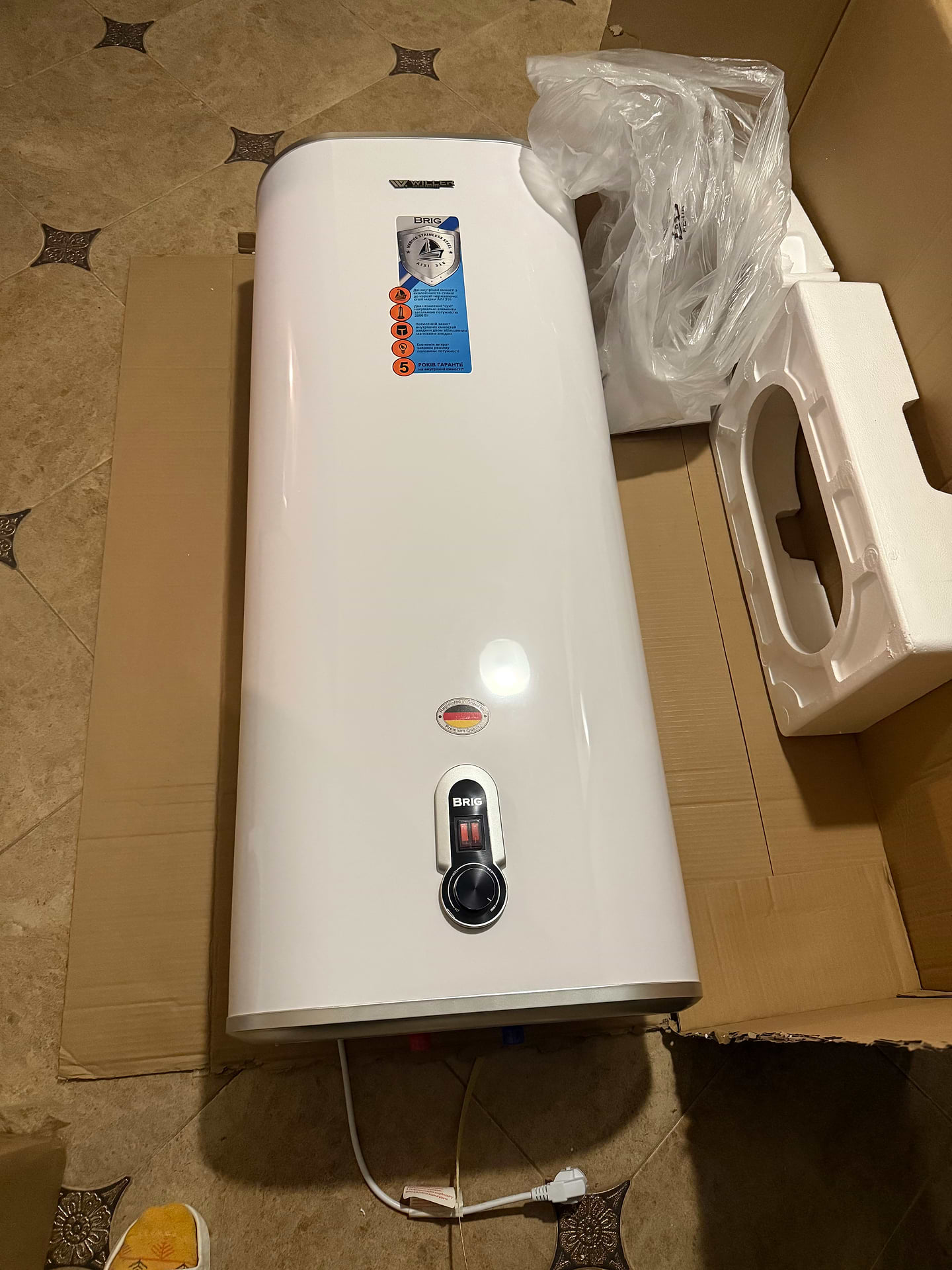 Шукали вузький плаский бойлер , бо простір обмежений з усіх боків крім висоти . Цей бойлер чудово підійшов. Через 2 дні експлуатаціі заміряли температуру води спеціальним водяним градусником . На максимумі та двох включених тенах видає 70 градусів по Цельсію. Режим еко некомфортний , вода нагрівается приблизно на 35-40 градусів , що в холодну пору року малувато. Думаю, що на екорежим є сенс переключатися влітку в жару.