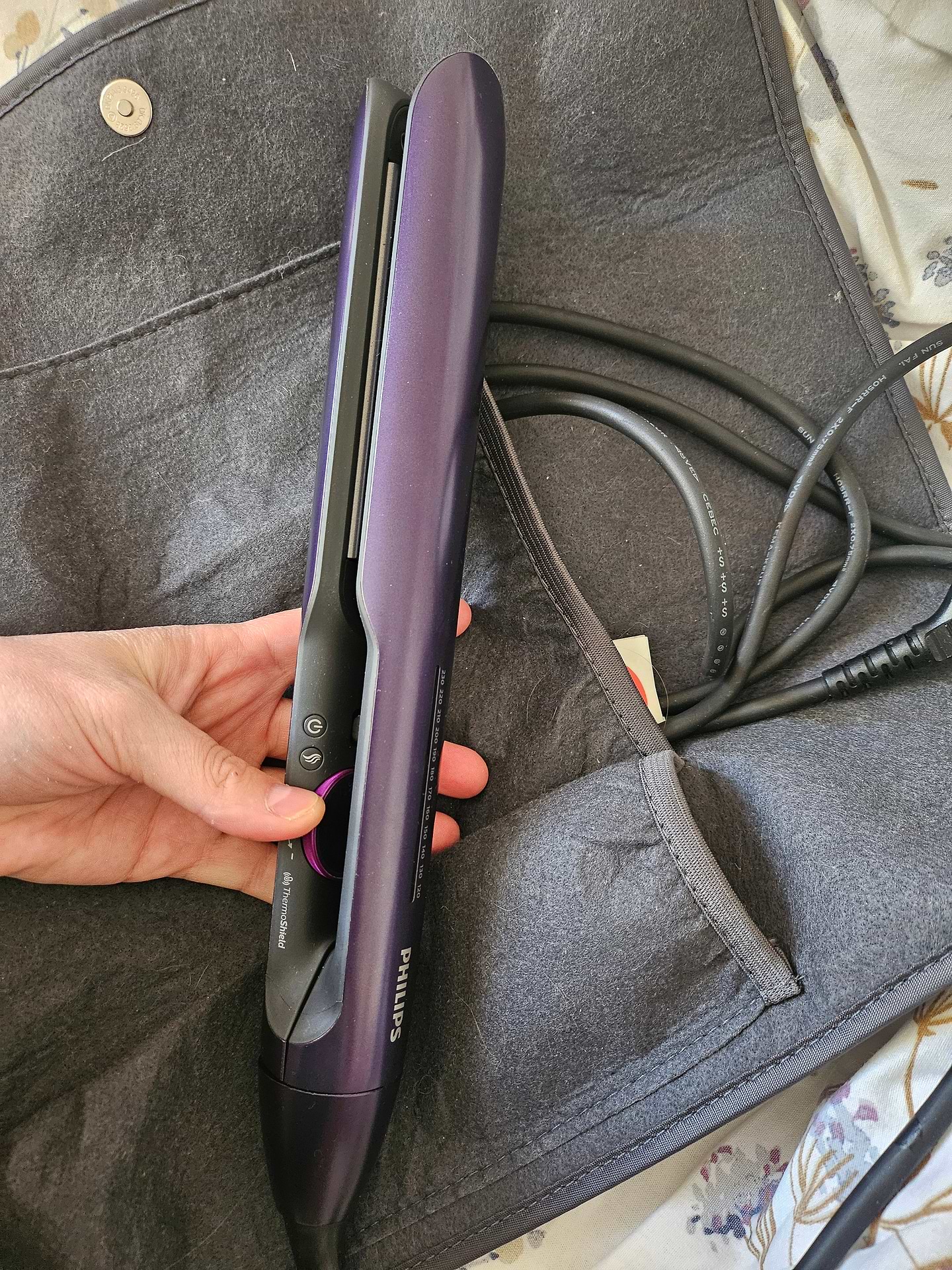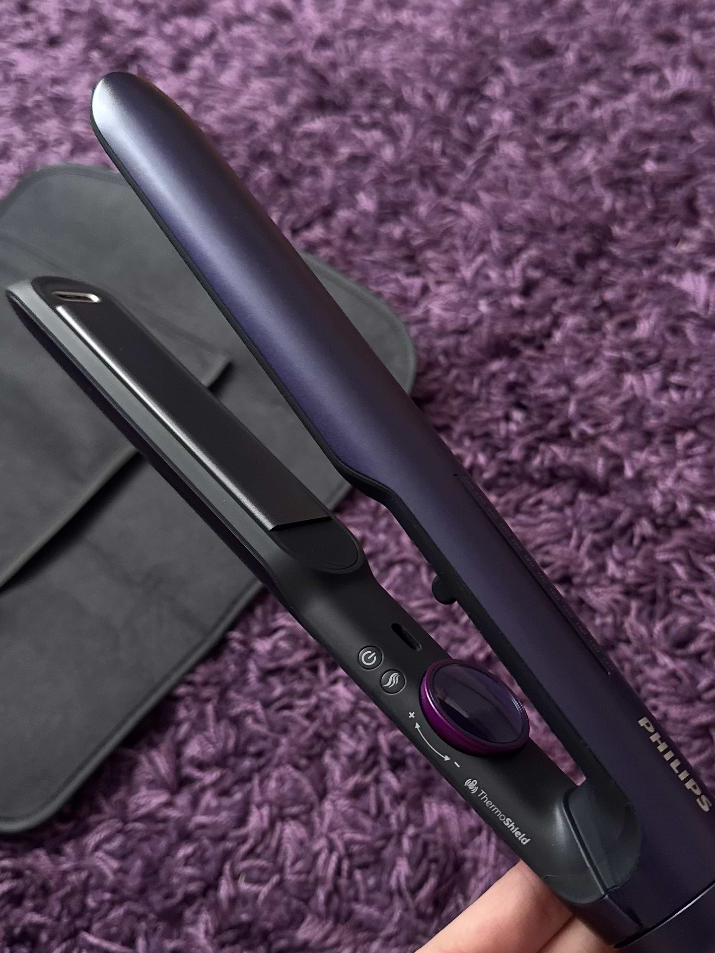 - Технология «ThermoShield» стабилизирует температуру, что помогает избежать перегрева волос и поддерживает их структуру здоровой.