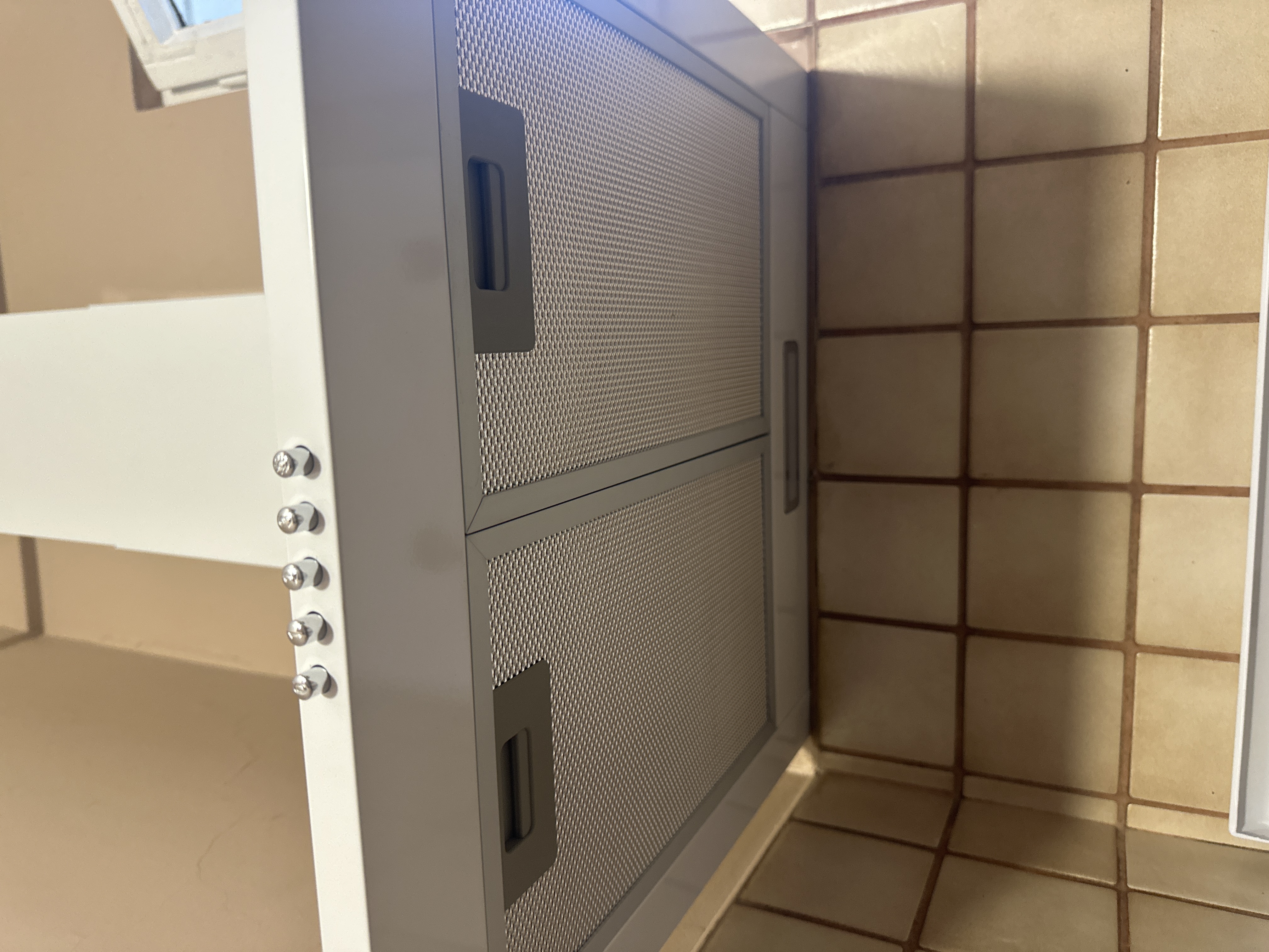 Перше , і саме головне , при встановленні витяжка малює плитку , в нас біла плитка , то там , де вона топкалася , залишилися сірі "візерунки" , друге: вона дуже марка - кожен відбиток пальця видно , тож терти доведеться постійно. Третє : гофра - тонка фольга , яка рветься від легкого натиску. Купувати треба додатково. І четверте : витяжка слабо тягне навіть на трійці , і гуде знатно . В нас до неї була геть бюджетна , то різниця тільки в ціні