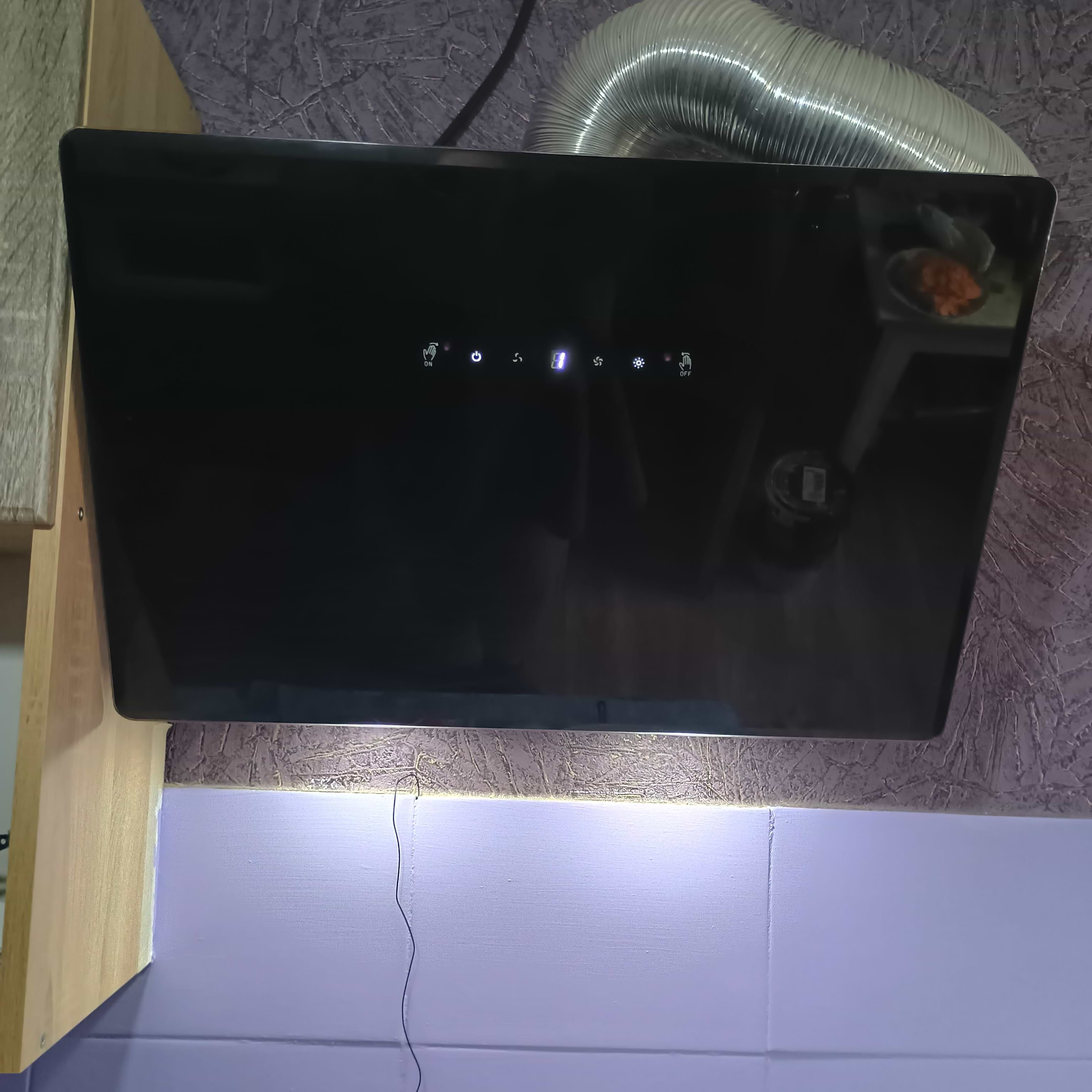 Стильна та потужна витяжка. Дуже сподобалось сенсорне та жестове керування — працює швидко й зручно. Тягне добре, запахи прибирає швидко, освітлення яскраве. Скляна поверхня легко миється. Загалом задоволений покупкою, рекомендую.»