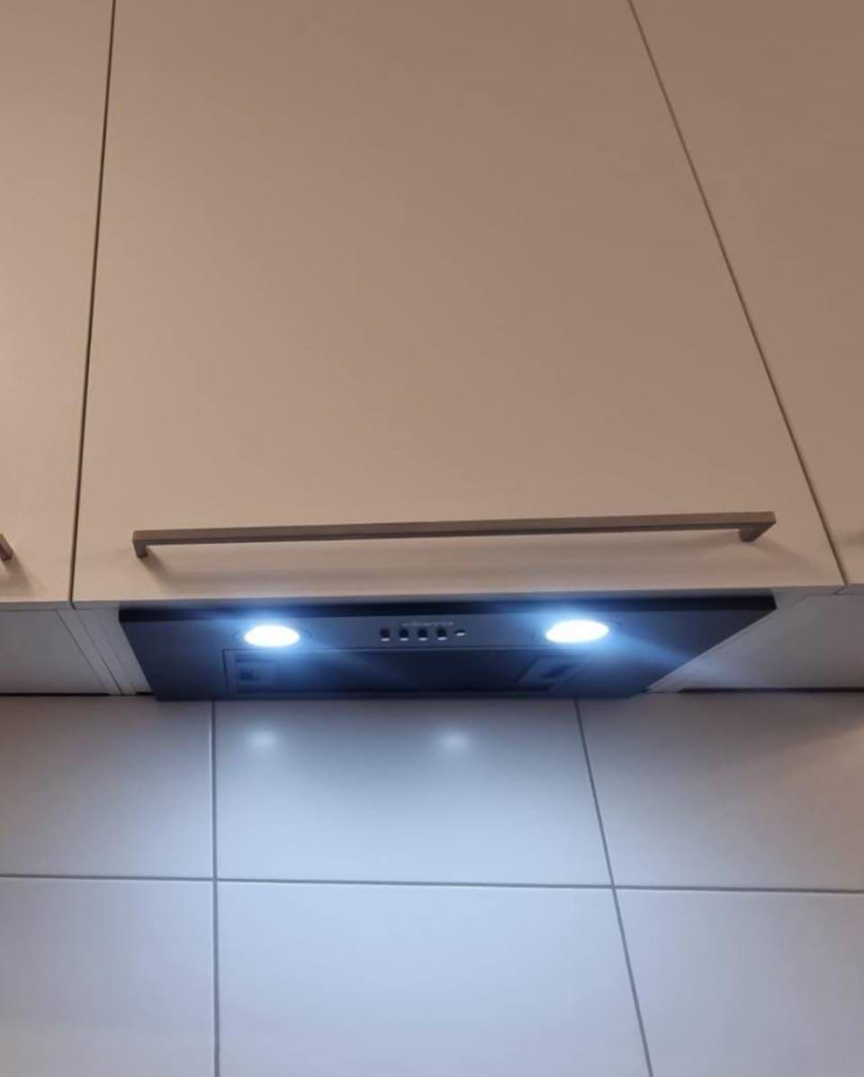 Витяжка легко встановлюється. Є інструкція з встановлення. Наружний тонкий профіль добре підходійшов до фасаду меблів. Підключення до повітропроводу також було простим. Гарне втягує пар та запах іжи, рівень шуму досить високий на 3швидкості, але не набагато голосніший, ніж у моєї старої витяжки.Для покращення шумової ізоляції пораджу зробити з пластикової труби вихід повітря до вентиляції. Підсвідка витяжки додає романтики при вечері.