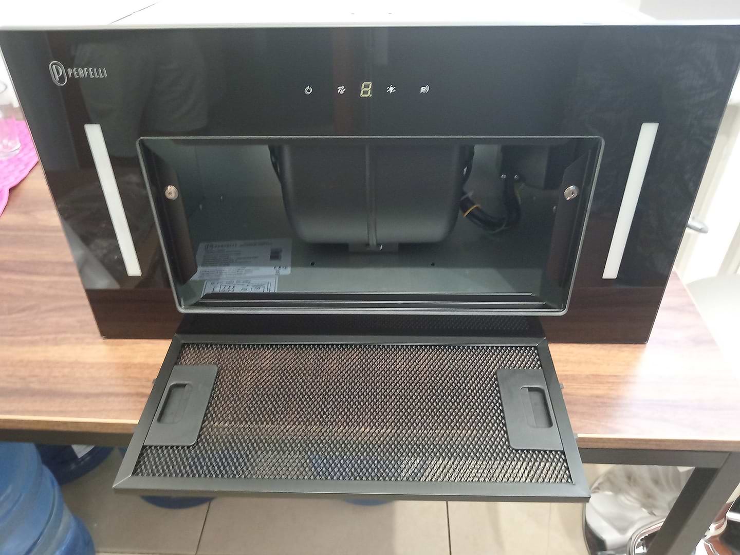Чудова витяжка в гарному дизайну. Доволі потужна, проте після якогось часу користування зіштовхнувся з проблемою того, що почала самостійно вмикатися або ж підсвітка, або ж сама витяжка. Після звернення в сервісний центр виробника мені порадили відʼєднати заземлення, оскільки виникає статична напруга, яка, власне, і викликає таке "самостійне життя" витяжки. Це допомогло, тому усим задовлений