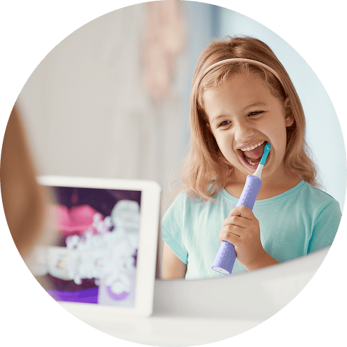 Дети учатся чистить зубы, а наша звуковая технология выполняет остальную работу. Динамичные движения электрической зубной щётки Philips Sonicare For Kids мягко и эффективно очищают межзубные промежутки и участки вдоль линии дёсен.
