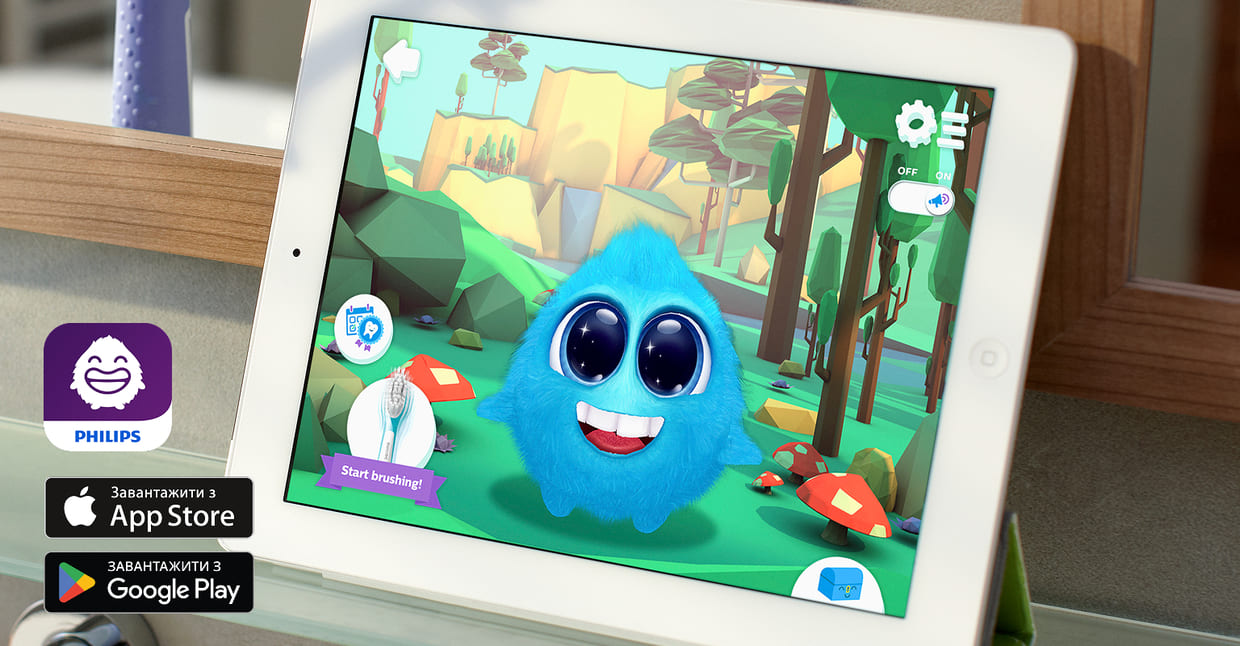 Синхронизируется со звуковой зубной щёткой ребёнка, чтобы помочь ему научиться ухаживать за полостью рта в игровой форме. Герой приложения Блищик поощряет ребёнка чистить зубы дольше и лучше. Каждый сеанс начинается с чётких визуальных инструкций по правильной технике чистки, а приложение отслеживает их прогресс. Дети учатся с удовольствием, а родители могут проверить, как они справляются с заданием.