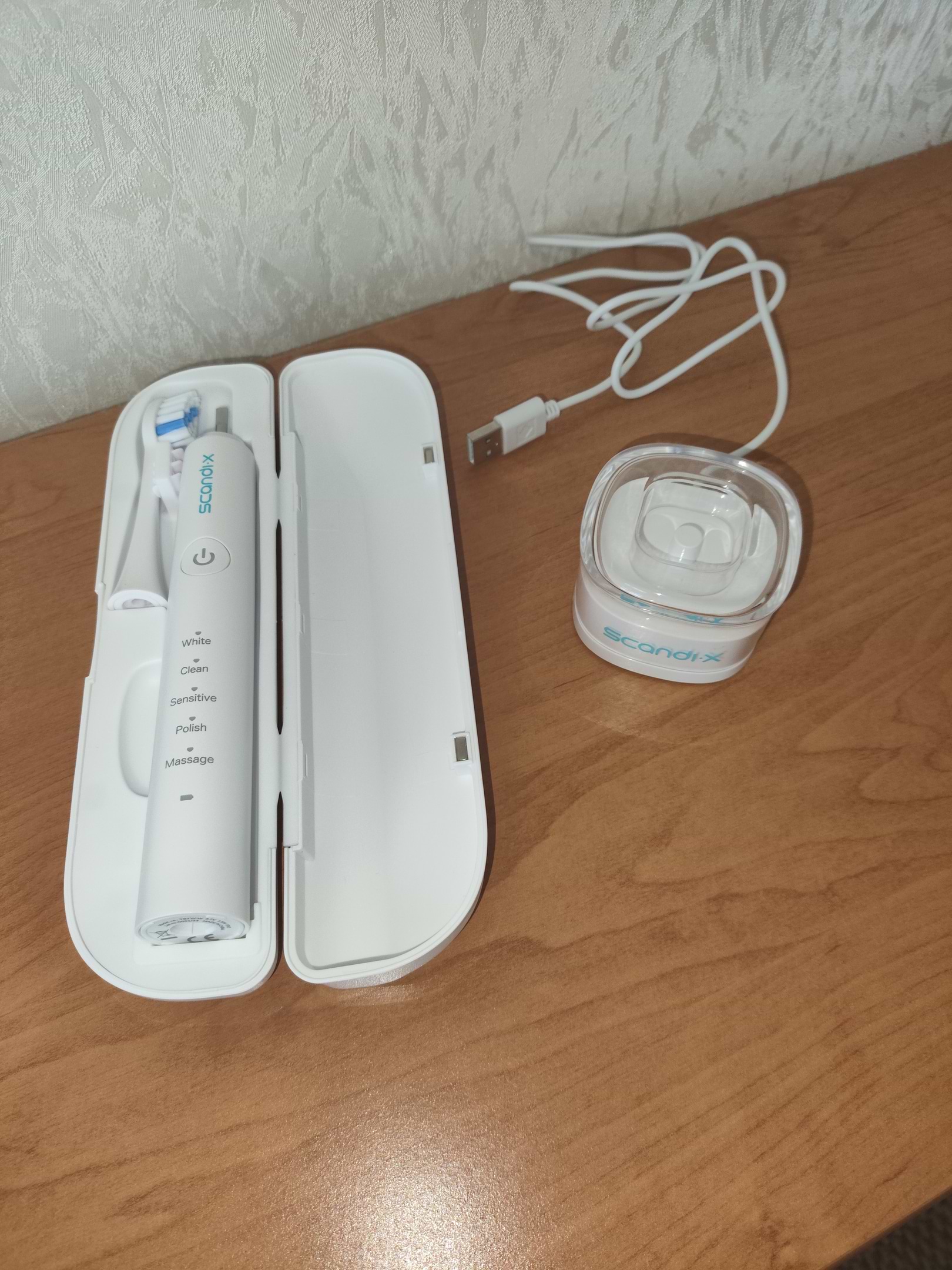 Щітка просто чудова, вичищає усе дуже добре,якісні насадки,корпус та чохол.Великий (+) у тому що є зарядна станція та 3 змінні насадки яких вистачить на тривалий час.За свої гроші дуже чудовий вибір.Рекомендую!!!