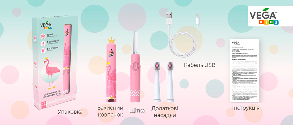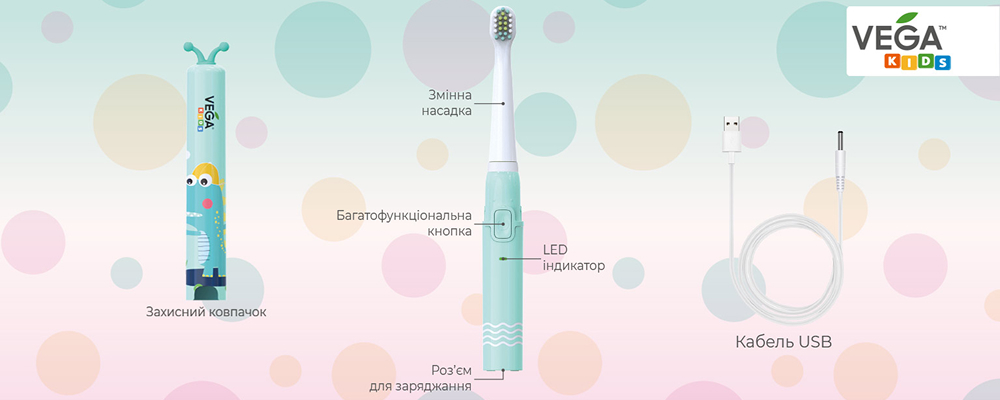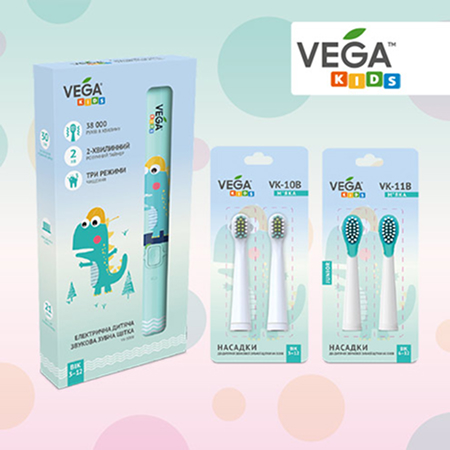 Детская щетка VK-500 со сменными насадками для нее VK-10 и VK-11